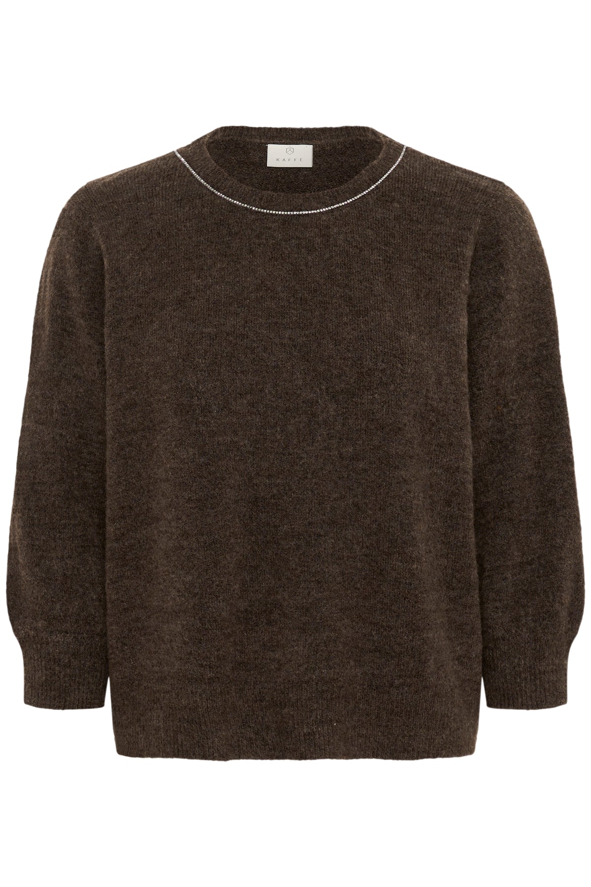 The Kaffe Meredith Pullover blends playful charm with everyday comfort. Featuring a round neck adorned with sparkling diamante detail, this fine-knit top offers a soft, cozy feel. Its three-quarter length sleeves add a flirty touch, making it perfect to dress up with jeans for a casual day or pair with a skirt to shine at work. Choose Chalk White or Coffee and let your style sparkle effortlessly.