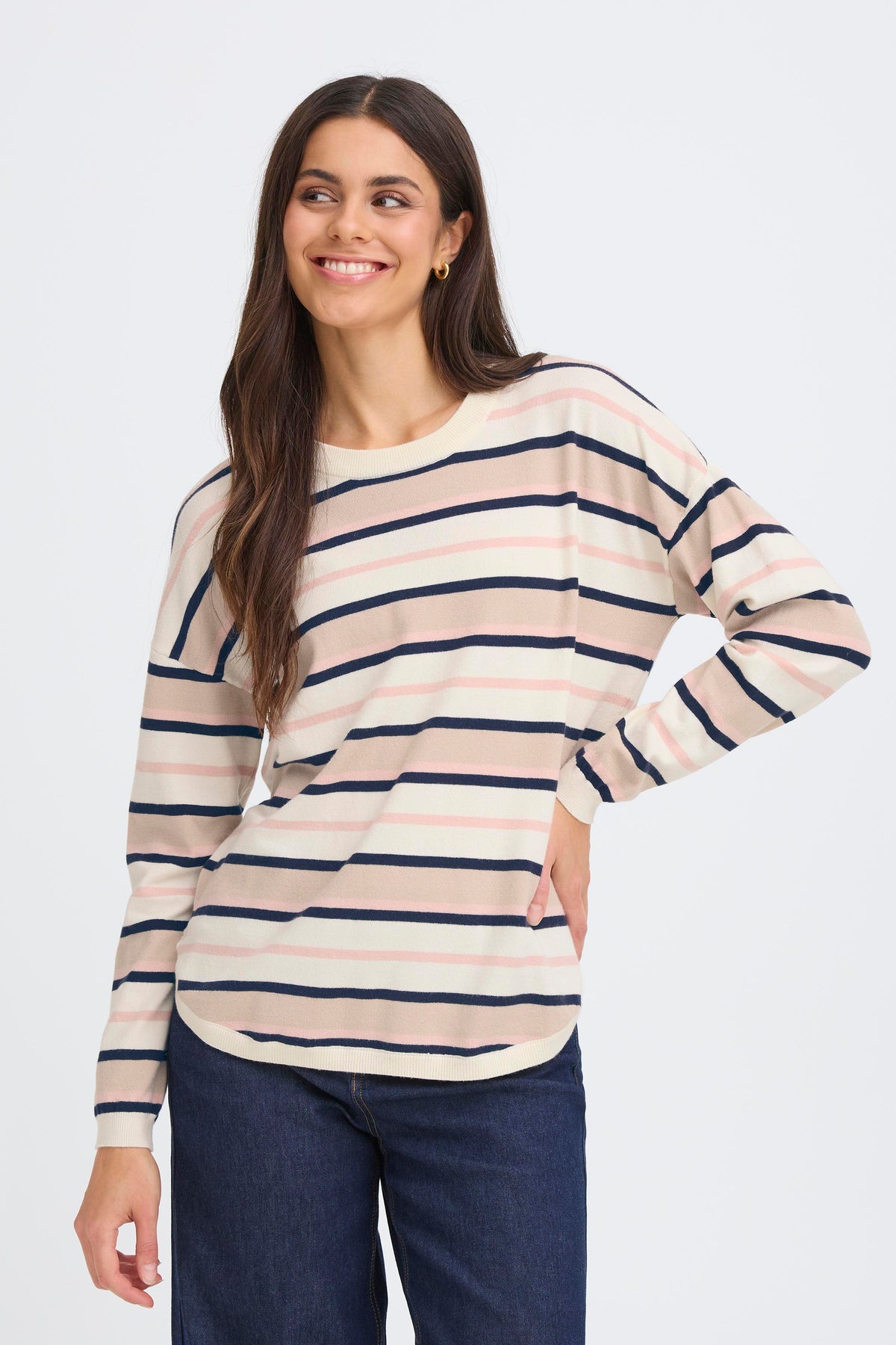 Stripes never go out of style, and this Fransa pullover proves it! Featuring a relaxed fit that's perfect for those days when comfort is king, the Melani pullover wraps you in soft texture and effortless cool. Long sleeves, a classic crew neck, and a straight hem create a timeless look that pairs with practically everything in your wardrobe. Whether you're layering it up or wearing it solo, this striped essential is ready for whatever your day throws at you.