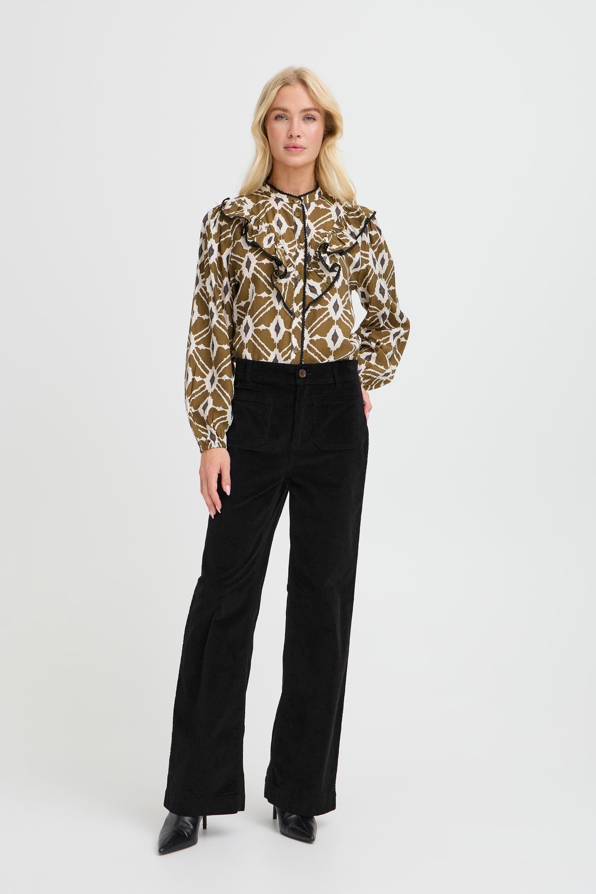 Step into comfort and style with the B Young Dasik Pocket Pants in Black. Crafted from mid-weight cord fabric, these high-waisted pants feature wide legs for a relaxed fit that moves with you. Perfect for both work and play, they offer practical front patch pockets to keep essentials close at hand. Elevate your smart casual wardrobe with these effortlessly cool trousers that blend function and flair.