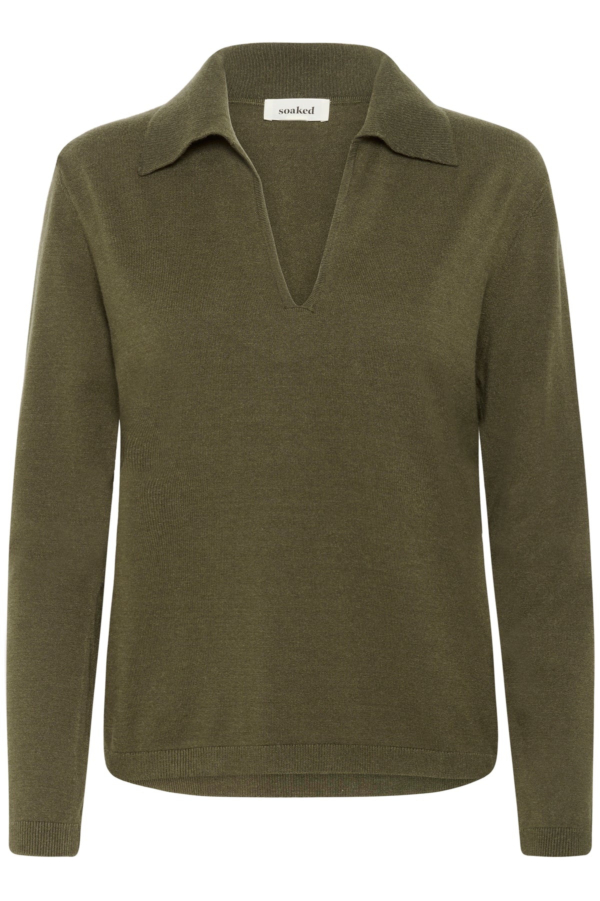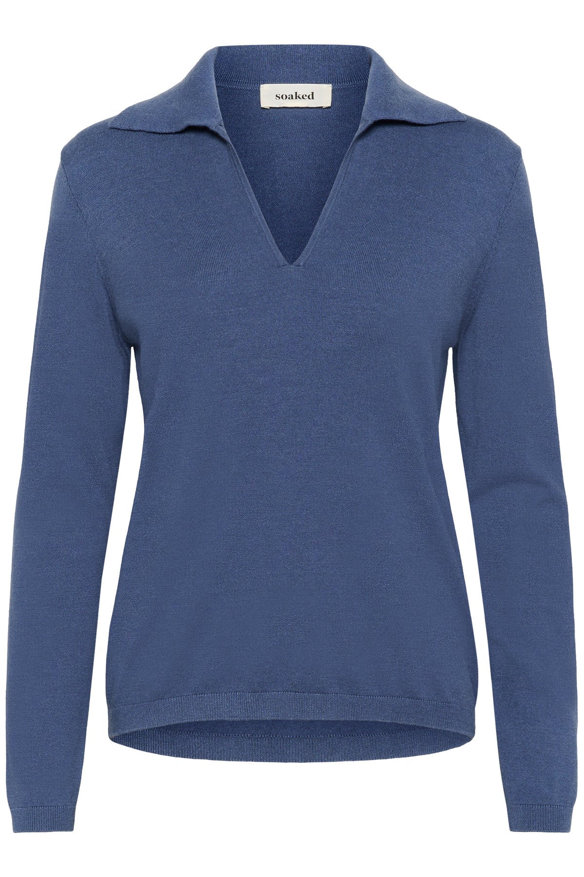 A smart classic fine knit jumper with polo style neckline, v opening and collar. This season Spina is available in khaki (tarmac) and a pleasing mid blue (bijou).