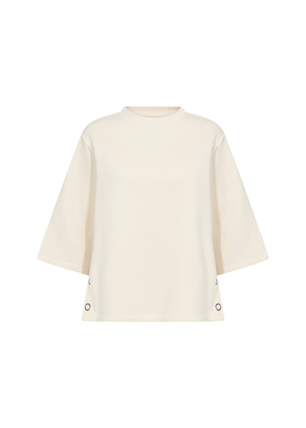 Elevate your everyday wardrobe with the Soyaconcept Angelin Sweatshirt Top—where comfort meets contemporary style. Crafted from 60% organic cotton, this cream beauty features a chic round ribbed neckline and generously wide sleeves that feel as good as they look. Elegant ring details at the sides add a touch of sophistication, while the plush fleecy lining keeps you cosy all day long. Effortlessly versatile, dress it up for brunch or down for lazy weekends. Modern, sustainable, and undeniably stylish.